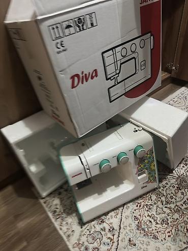 Швейная машина Janome Diva с механическим управлением, выполненная в белом корпусе с яркими зелеными акцентами и декоративным узором. Модель оснащена регуляторами для выбора строчек, длины стежка и ширины строчки, что обеспечивает гибкость в работе с различными типами тканей и проектами. Удобная конструкция позволяет легко выполнять повседневные швейные задачи, а также более сложные творческие проекты. Подходит для домашнего использования, обучения шитью и небольших ателье.