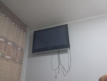 В комплекте на фото: телевизор, настенный кронштейн, подключенный кабель AV.
