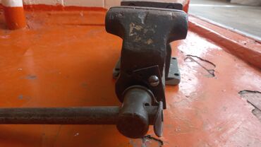Слесарные тиски на металлическом столе/тумбе. Описание: - Массивные