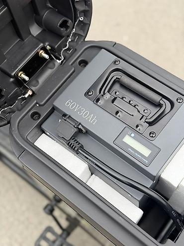 - Съемная литиевая батарея 60V 30Ah с удобной ручкой для переноски и встроенным индикатором уровня заряда.