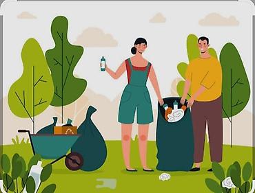 - Сбор и сортировка мусора: пластик, бумага, стекло, бытовые отходы, ветки, трава, листья.
