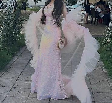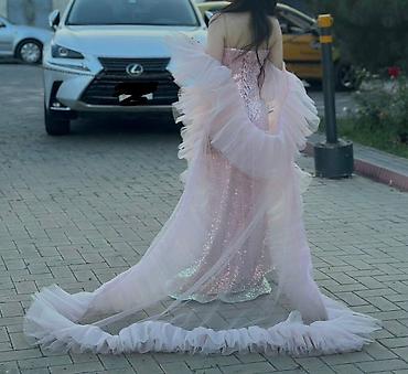 Вечернее платье русалка + накидка-шлейф - Цвет: нежно-розовый с