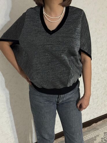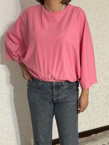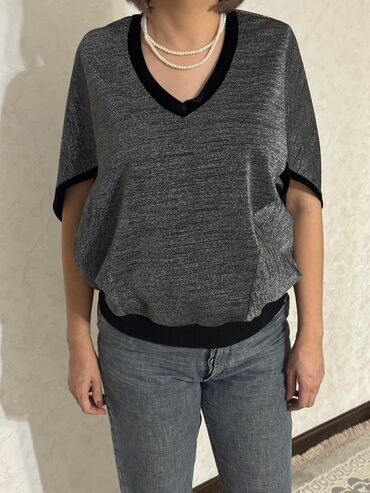 Подходят для повседневных и офисных образов, сочетаются с джинсами, брюками и юбками. Размер на фото — свободная посадка, рукав полный, длина закрывает линию бедра. Цвета: черный (две фактуры) и темно-синий с принтом и отделкой.