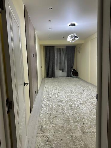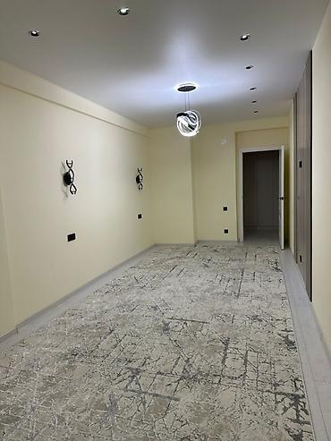 - Стены в спокойных светлых тонах, на полу — покрытие под светлый камень/бетон, широкие плинтусы.