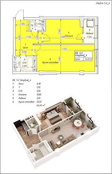 Квартира: планировка «1‑С (студия)» общей площадью 54,03 м². Ош Город