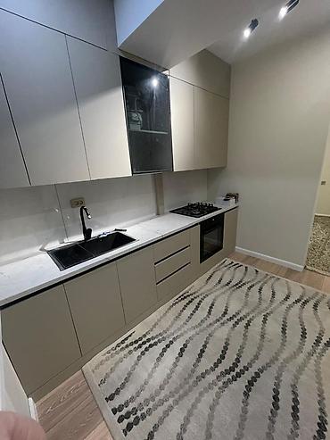 - Кухонный гарнитур с верхними и нижними шкафами до потолка, система плавного закрывания.