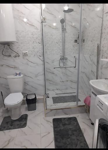 - Современный санузел с душевой кабиной, водонагревателем и стиральной машиной.