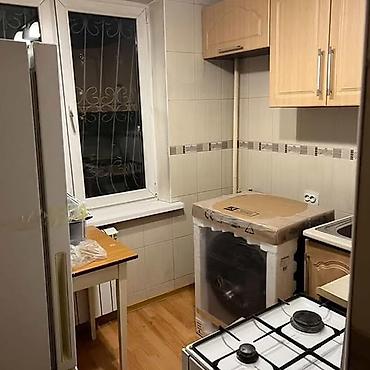 - Кухня компактная, отделка плиткой, на полу ламинат. Газовая плита, мойка, навесные и напольные шкафы, холодильник. Поставлена новая техника в упаковке (стиральная машина).