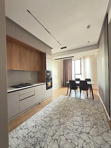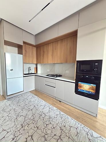 Сдается светлая 2‑комнатная квартира с современным ремонтом. - Просторная кухня‑столовая: длинная линейка гарнитура с множеством шкафов, газовая варочная панель, вытяжка, раковина с высоким смесит...40 000 KGS