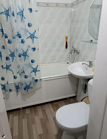 - Санузел совмещенный: ванна с душем и шторкой, умывальник с полкой и зеркалом, унитаз.