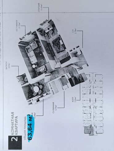 Жилой комплекс "Виктория" от застройщика "Визион Групп" расположенная по адресу.Курманжан Датка 132. 2‑комнатная квартира, общая площадь 63,64 м².