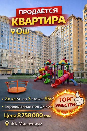 • 2х комнатная, 3 этаж, 95м² (переделанная под 3х ком)