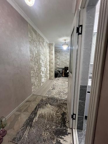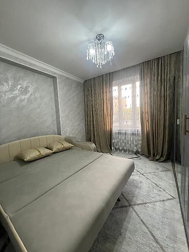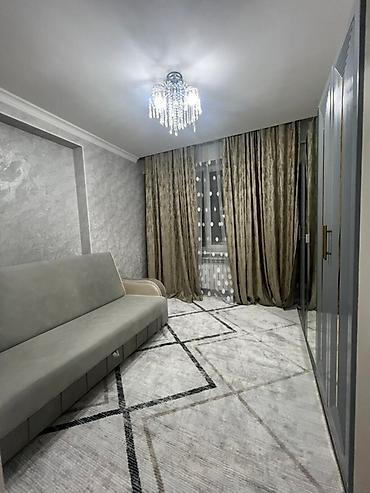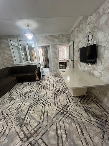Сдается в аренду двухкомнатная студия адрес : Мк-р Анар 1 В. квартира с современным ремонтом и мебелью. Таза жашайтурган адамдарга берилет баары жаны❗️❗️❗️ Студентам просьба не беспокоить❗️В гостиной расположен большой угловой диван коричневого цвета и светлый журнальный столик, дополняющие интерьер. Кухня оборудована светлыми верхними и темными нижними шкафами, имеет просторный обеденный стол и стулья бежевого цвета. В спальне установлен удобный диван-кровать и вместительный шкаф-купе с зеркальными дверцами. Квартира оснащена люстрами с хрустальными подвесками и функциональным освещением на кухне, а также плотными шторами на окнах, обеспечивающими комфорт и уют.