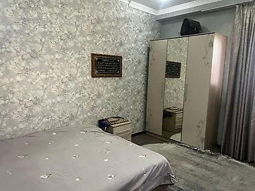 - Спальня: двуспальная кровать, шкаф‑купе с зеркалом, прикроватная тумба. Светлые обои с флористическим рисунком, потолочный карниз, плотные шторы.