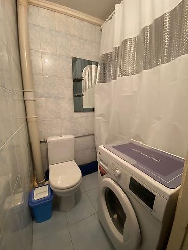 - Санузел: унитаз, зеркало с полочками, душевая зона с шторкой, стиральная машина LG.