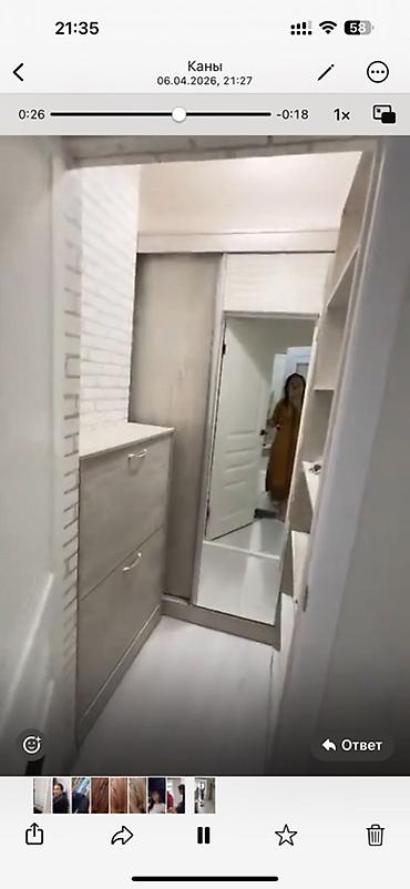 - Планировка: жилая комната с выходом в кухню через раздвижные стеклянные двери; компактная кухня-нишa у окна/балконного блока; отдельная прихожая с системами хранения.