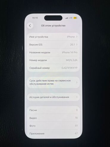 IPhone 14 Pro, Б/у, 256 ГБ, Deep Purple, Коробка, 77 %