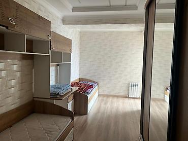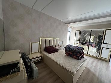 - Основная — двуспальная кровать с мягким изголовьем, прикроватные тумбы, вместительный шкаф-купе с зеркальными фасадами.