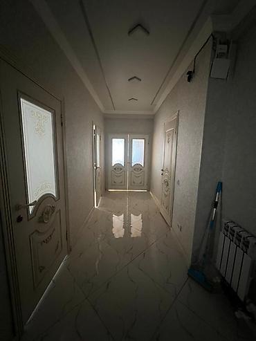 - Отделка и материалы: глянцевая керамогранитная плитка в холле и кухне, ламинат в спальнях, декоративные обои, многоуровневые потолки с точечным и трековым освещением, лепной декор.