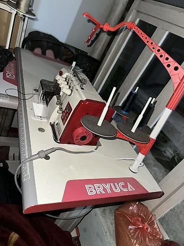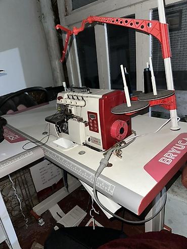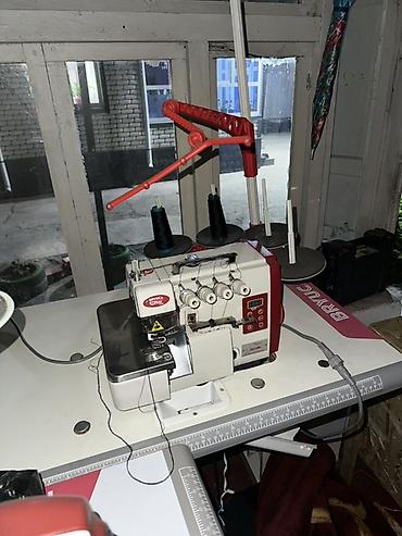 Промышленный 4‑ниточный оверлок BRYUCA на столе с мотором