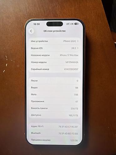 Продаю iPhone 17 pro 256 99% НЕ ВСКРЫТЫЙ, состояние отличное,есть маленькие две микро царапины на последней фоте видны,экран чистый без царапин, Физ сим и Е-СИМ регистрация есть,ЦЕНА 99000СОМ,обращ...