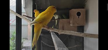 Продаю попугаев пара желтый самец зеленная самка пара уже выводили