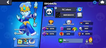 Подходит для игры на высоких рангах и рангового боя, с хорошим набором бойцов и прокачкой для пуша трофеев. Скриншоты отражают актуальные показатели профиля и содержимое аккаунта.