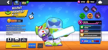 - Вольт Лайтер (легендарный скин). Сила 9/11, здоровье 5940, атака 2124, супер «Коронный номер». Гаджеты/звёздные силы: 1/2 и 2/2.