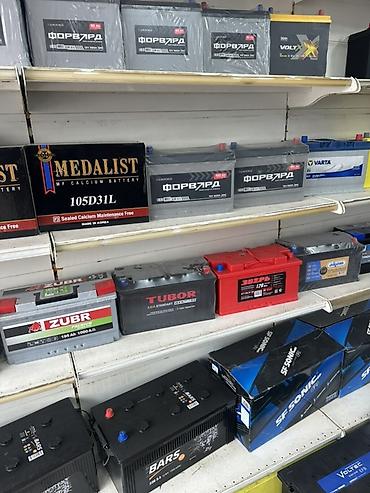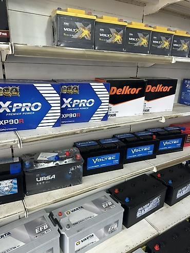 Автомобильные аккумуляторы разных брендов и ёмкостей. Ассортимент по фото: - BARS: линейки Premium/Extra Powerful, Asia (Special for Asian machines). Параметры на витрине: 12 V, 90–100 Ah, пусково...