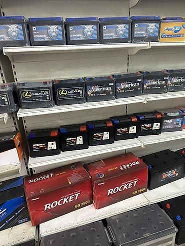 Автомобильные аккумуляторы разных брендов и типоразмеров. Ассортимент на фото: - Rocket GB 40AL - Varta Professional D24 12V 44Ah 570A EN (Dual Purpose) - Bars Asia 12V 100Ah 800A EN (для азиатски...
