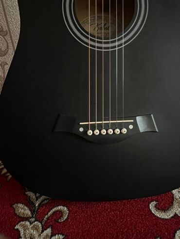 Подходит для аккомпанемента и игры боем/перебором; универсальное звучание за счёт корпуса dreadnought и металлических струн. Стильный матовый чёрный внешний вид.