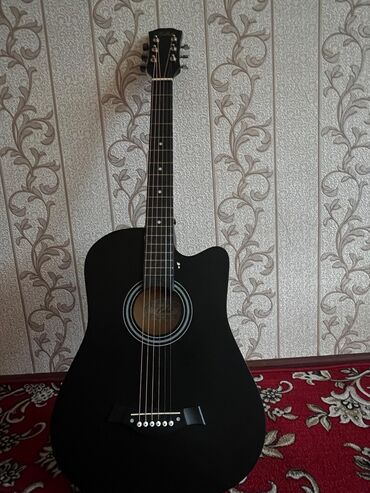 Акустичекомская гитара dreadnought с вырезом, матовый чёрный цвет.