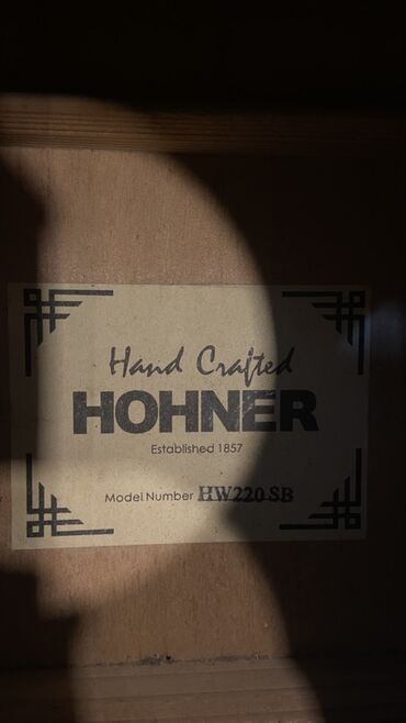 - Внутри корпуса шильдик: Hand Crafted Hohner, Model Number HW220-SB