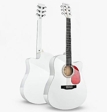 Акустическая гитара с комплектом. Цвет - белый. Размер 40. В хорошем состоянии, новая, чистая. Звук громкий и чистый. Подходит как для начинающих, так и для опытных игроков.
