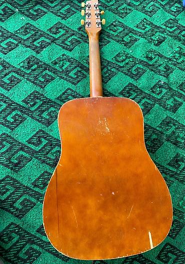 - Корпус формы дредноут, верх из ели с выраженной текстурой, гриф и накладка из темной породы дерева.