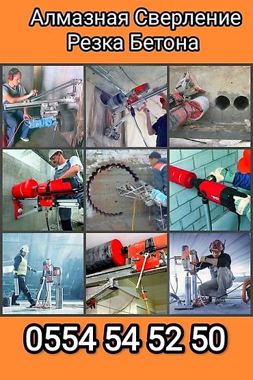 Алмазный сверление бетон кирпич фындомент.и.д. Стега резка проем окна двери маналит итд. опыт рабыт 6 лет. Район Бишкек Токмок ,Сокулук, Кара-Балта............................................