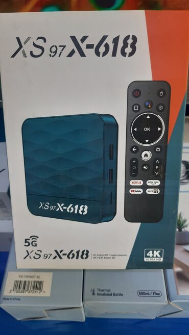 Комплект на изображении: приставка XS97 X‑618 и пульт дистанционного управления. Отлично подходит для потокового видео, приложений и медиаконтента в разрешении 4K.