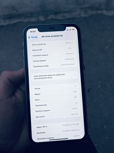 - Серийный номер и адреса Wi‑Fi/Bluetooth видны на фото настроек