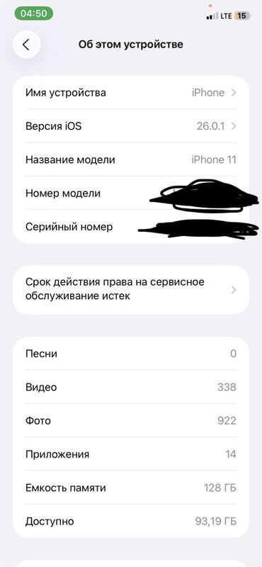 IPhone 11, Б/у, 128 ГБ, Черный, Кабель, 100 %