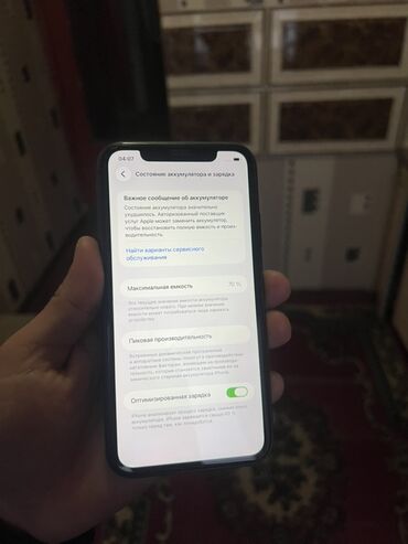 - Аккумулятор: в разделе «Состояние аккумулятора» отображается максимальная ёмкость 70%, включена «Оптимизированная зарядка».