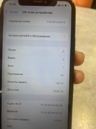 - Память: 64 ГБ (доступно около 15,65 ГБ на момент снимка экрана).