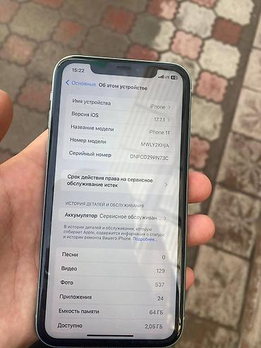 IPhone 11, зелёный На экране есть царапинки на фото видно! Всё идеальное - Модель: iPhone 11 (номер модели MWLY2KH/A) - Память: 64 ГБ (доступно ~4,95 ГБ на момент снимка) - iOS: 17.7.1 - Диспле...