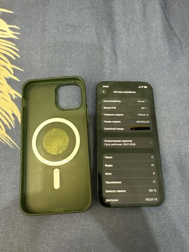 IPhone 12, Б/у, 128 ГБ, Черный, Чехол, 91 %