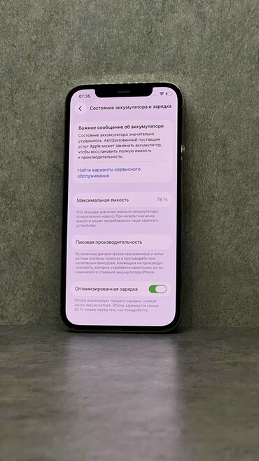 - Аккумулятор: максимальная ёмкость 78% (на экране есть уведомление о сниженной ёмкости)