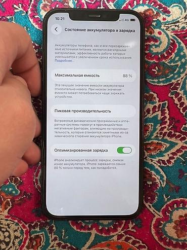 - Показатель емкости аккумулятора на скриншоте — 88%, включена «Оптимизированная зарядка»
