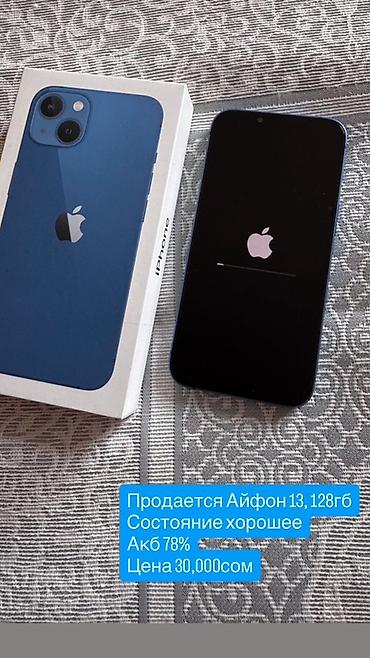 IPhone 13, Б/у, 128 ГБ, Синий, Коробка, 87 %