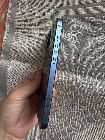 Смартфон Apple iPhone в синем цвете (линейка с плоскими гранями). Экран с вырезом под Face ID, поддержка Night Shift и True Tone. На задней панели — двойной модуль камеры по диагонали с вспышкой и ...