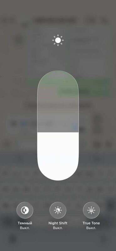 - iOS с панелью управления яркостью, режимами Темный/Night Shift/True Tone