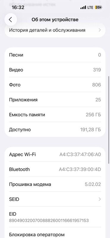 - Память: 256 ГБ (доступно ~191 ГБ на скриншоте)