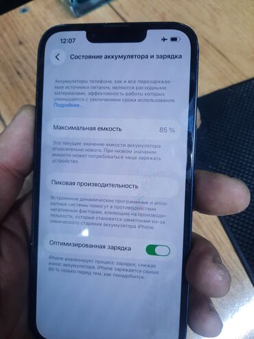 - Аккумулятор: максимальная ёмкость 85%, включена «Оптимизированная зарядка»